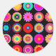 Un patrón consistente en pequeñas y coloridas mandalas redondas caleidoscópicas, cada una es diferente.