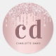 Pegatina Redonda Fragmentos de rosa rosado en monograma goteo de pu