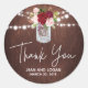 Pegatina Redonda Frasco de Madera Burgundy Flor Boda Gracias