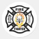 El cráneo inflamable de un bombero enciende llamas contra el símbolo del logo de la cruz maltesa, símbolo de extinción de incendios, y lo suficientemente duro como para hacer el trabajo.