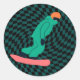 Pegatina Redonda Freerid Snowboarder En Green Suit Checkpoint