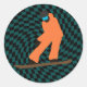 Pegatina Redonda Freerid Snowboarder En Naranja Suit Checkered