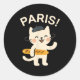 Pegatina Redonda French Cat With Baguette Cute Cat Paris Funny Anim