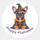 Pegatina Redonda Frenchie Halloween Purple Robe Witchy Hat