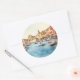 Pegatina Redonda Frente Al Agua Y Barcos En El Puerto, Italiano