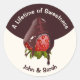 Sella tus regalos de aniversario con un toque de elegancia gourmet utilizando esta etiqueta personalizable "Una vida de dulzura". Con una rica fresa cubierta de chocolate ilustrada a mano sobre un fondo clásico crema y granate intenso, este diseño coincide perfectamente con nuestra colección de papelería de aniversario premium. La tipografía audaz y arqueada celebra su vínculo duradero, mientras que la sección inferior permite una fácil personalización con los nombres de la pareja. Ya sea que se utilice como sello de sobre para anuncios de aniversario o como etiqueta decorativa para favores de fiesta y dulces, esta etiqueta proporciona un toque final de alta calidad y cohesión a cualquier celebración de aniversario.