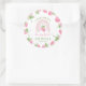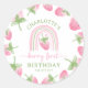 Fresa Berry First Birthday Classic Round Pegatina en bonito rosa con arcoiris y corazón dulce.