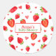 Añada un toque encantador a su ducha de bebé con nuestro pegatina redondo de fresa "Berry Sweet", perfecto para favores y decoraciones.
