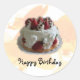 Pegatina Redonda fresa feliz de cumpleaños, pastel de chocolate