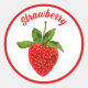 Fresa roja brillante con tallo de hojas. Ilustracion acuático. La palabra "fresa" en el texto es editable para personalizar al pegatina.
