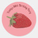 Pegatina Redonda Fresa Roja y Rosa con Mensaje Personalizado