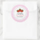 Pegatina Redonda Fresa y Gingham Personalizado