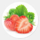 Pegatina Redonda Fresas cortadas con hoja