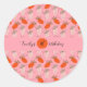 Pegatina Redonda Fresas Doodle Blanco Rosa Cumpleaños