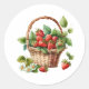 Pegatina Redonda Fresas frescas en una canasta de mimbre
