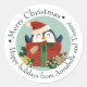 Pegatina Redonda Frohe Weihnachten Geschenkaufkleber mit Pinguin