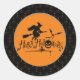 Pegatina Redonda Frontera Negra Feliz Bruja De Halloween Y Bats