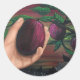 Pintura original de una mano agarrando una fruta del árbol, mientras una serpiente está presente.