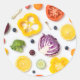 Este diseño presenta un gran collage de frutas y verduras coloridas.