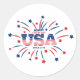 Pegatina Redonda Fuegos artificiales Estados Unidos Patriótico Rojo