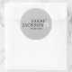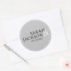 Pegatina de boda redonda clásica con tus nombres y fecha, fácilmente actualizable con tus datos. Esta es de color gris claro - cambia el color si lo deseas, pero asegúrate de ver los productos coordinados en nuestra tienda para esta colección en particular.