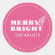 Esta pegatina de Navidad magenta única y simple fue diseñada para coordinar con mi colección de vacaciones Merry & Bright. Cuenta con una fuente moderna y negrita con tipografía de escritura sobre un fondo rosa único. Perfecta para sellos de sobres de pinkmas y envolturas de regalos. Para ver la línea completa visite www.zazzle.com/dotellabelle