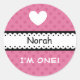 Pegatina Redonda Fun PINK POLKA PUNTOS con Chica del corazón Primer