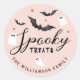 Divertidos miedosos tratan al pegatina de Halloween. Perfecto para añadir a tu fiesta de Halloween bolsos de favor. Nuestro diseño incluye murciélagos y fantasmas divertidos, junto con un divertido Personalizar tipográfico de "Tratamientos fantasmales" con su nombre. Diseñado por Moodthology Papery