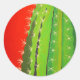 Directamente del desierto de Sonora, un majestuoso cactus de saguaro pintado en tonos verdes sobre un fondo rojo brillante