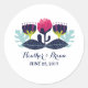 Moderno y elegante Funky Floral Wedding Stickers con una colorida gama de floridos follaje azul oscuro y perinchable y flores magenta rosa y morado estilizadas. Estos stickers de bodas geniales y de moda se pueden personalizar con los detalles de su boda. Para obtener más opciones de personalización, haga clic en el botón Personalizar.