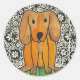Este cachorro dulce es una acuarela original y dibujo de tinta por parte de un profesor. El perro se sienta en un suelo azul y verde, y está rodeado de bondad arrogante: estrellas, flores, remolinos, círculos...¡algo que llama la atención cuando estudias los elementos de diseño! ¡Gracias por apoyar a artistas independientes! Ver todas mis obras originales aquí: http://paintingrocks.1000markets.com