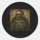 Pegatina Redonda Funny Bigfoot Christmas – Xmas Sasquatch Mugshot
