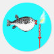 Pegatinas de regalo de cumpleaños, etiquetas de fiesta o sellos para sobres con peces personalizados que hacen un deseo. Añade tu texto al personalizar.