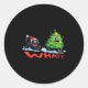 Pegatina Redonda Funny Black Cat Chasing Christmas Tree Over Cat Wh