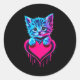 Pegatina Redonda Funny Blacklight Glitch Art Cute Cat Kitten Valent