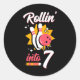 Pegatina Redonda Funny Bowling 7 cumpleaños Rollin' en 7
