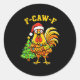 Pegatina Redonda Funny Christmas Chicken Lights Santa Hat F-caw-f