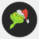 Pegatina Redonda Funny Christmas Frog Wearing Santa Hat And Lights