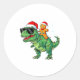 Pegatina Redonda Funny Christmas T Rex Dinosaur Gingerbread Lights