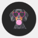 Pegatina Redonda Funny Dachshund Wearing Gles And Blowing Nk Bubble