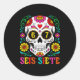 Pegatina Redonda Funny Dia De Los Muertos Sugar Skull Seis Siete 67