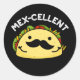 Pegatina Redonda Funny Excelente Taco Pun Dark BG