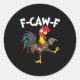 Pegatina Redonda Funny F-awk-f Chicken F-caw-f Rooster Pun Retro