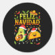 Pegatina Redonda Funny Feliz Navidad Avocado Tacos Mexican Christma