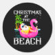 Pegatina Redonda Funny Flamingo Float Santa Claus Christmas At The