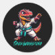 Pegatina Redonda Funny Martial Arts Karate Taekwondo Dino Animal Cu