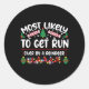 Pegatina Redonda Funny Most Likely To Get Run Over By A Reindeer T