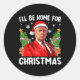 Pegatina Redonda Funny Navidades de Trump Santa Hat Estaré en casa