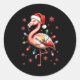 Pegatina Redonda Funny Nk Flamingo Christmas Tree Lights Xmas Snowf