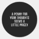 Pegatina Redonda Funny, Penny For Your Thoughts